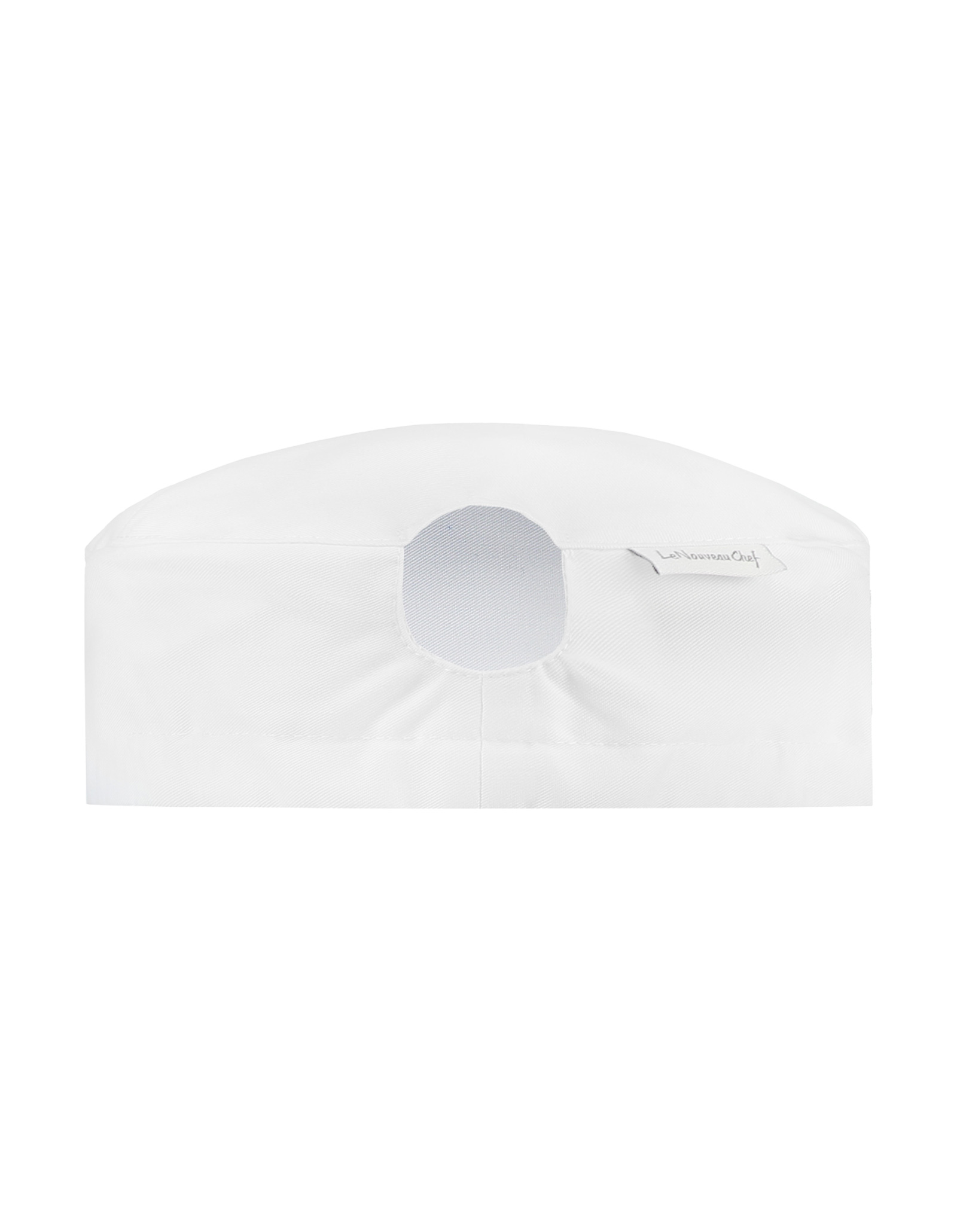 Kochmütze Fez Ponytale ist eine moderne weiße Kochmütze mit einer Bordüre von ca. 8 cm. Der Fez hat einen verstellbaren Riemen an der Innenseite. Diese Kochmütze bietet Platz für einen Pferdeschwanz. Diese Kochmütze ist in Schwarz und Weiß erhältlich und ist in einer Größe erhältlich (Einheitsgröße).